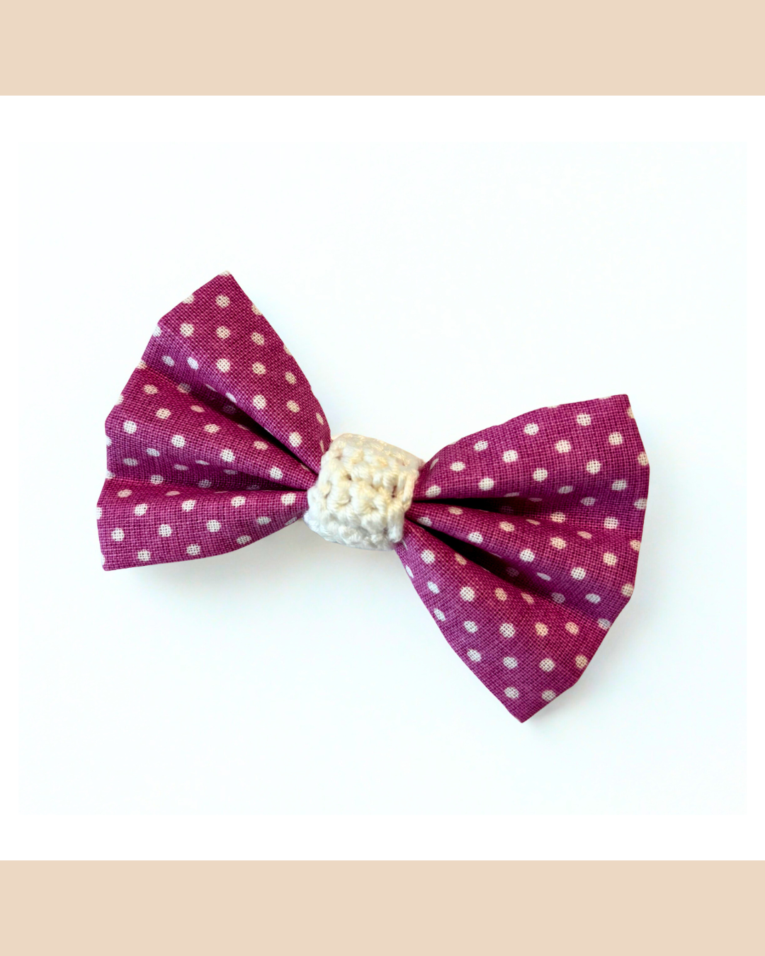 🎀 Réalisé à la main avec soin, il associe un tissu à pois délicat et un centre en crochet, incarnant tout le charme du fait main et de la simplicité poétique.